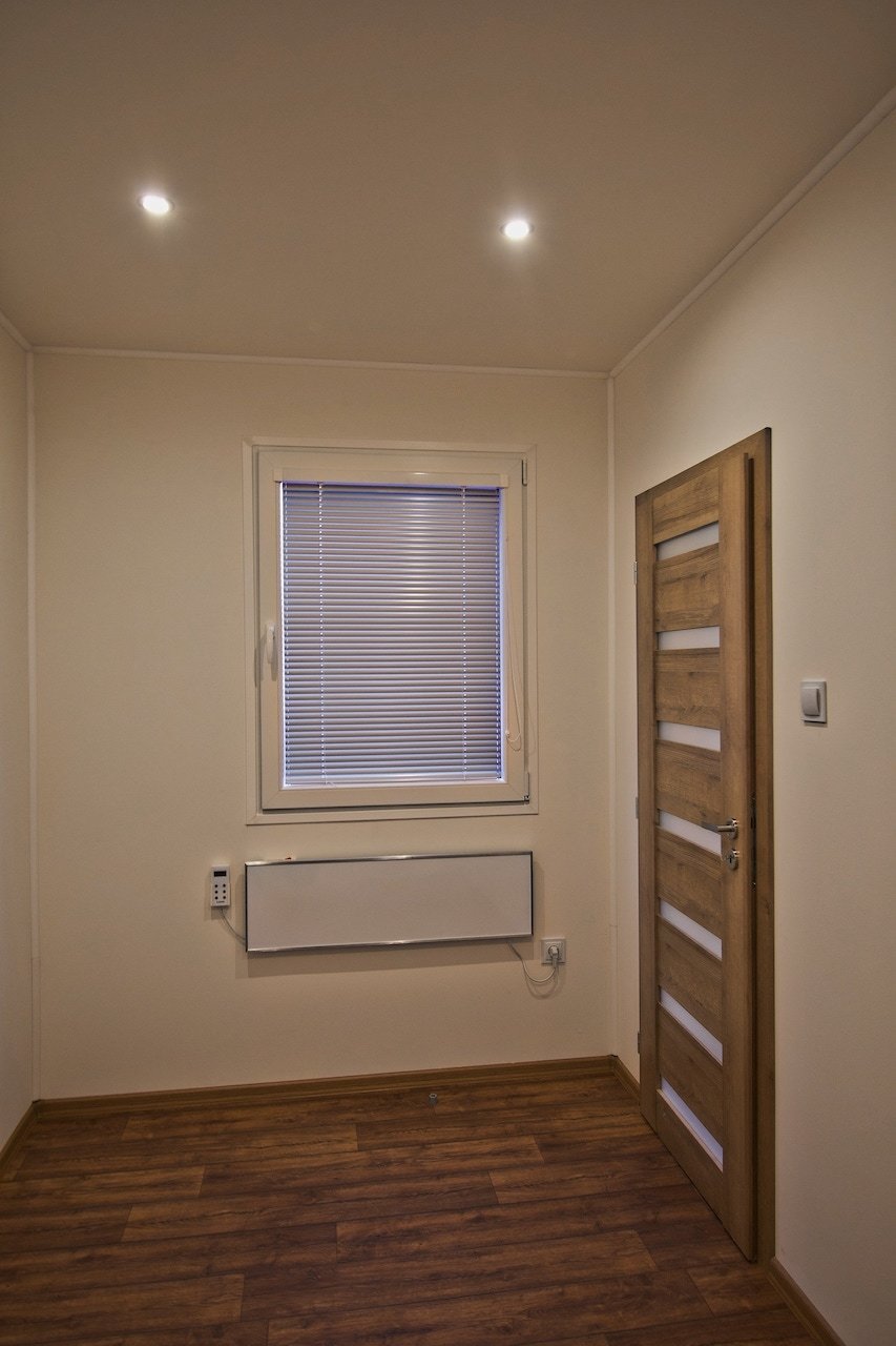 Součástí domu je kompletní elektroinstalace včetně rozvodů pro elektrické vytápění, osazení přímotopů, dokumentace a revize. Realizujeme podlahové topení nebo můžeme doplnit přípravou pro krbová kamna.