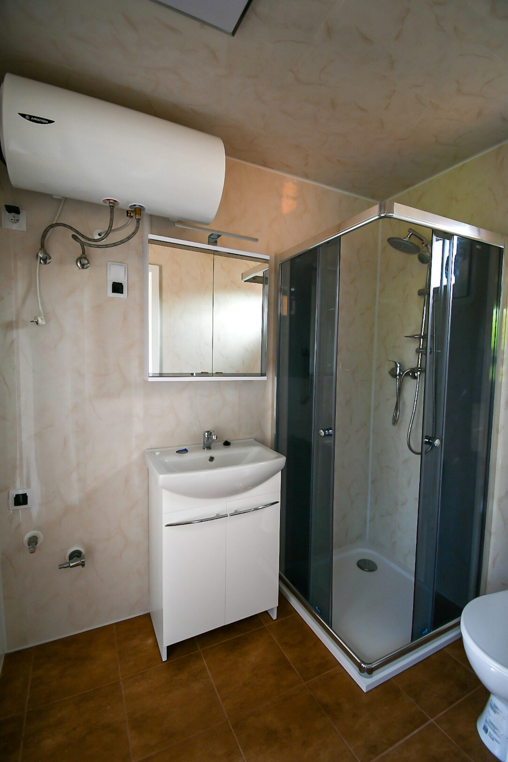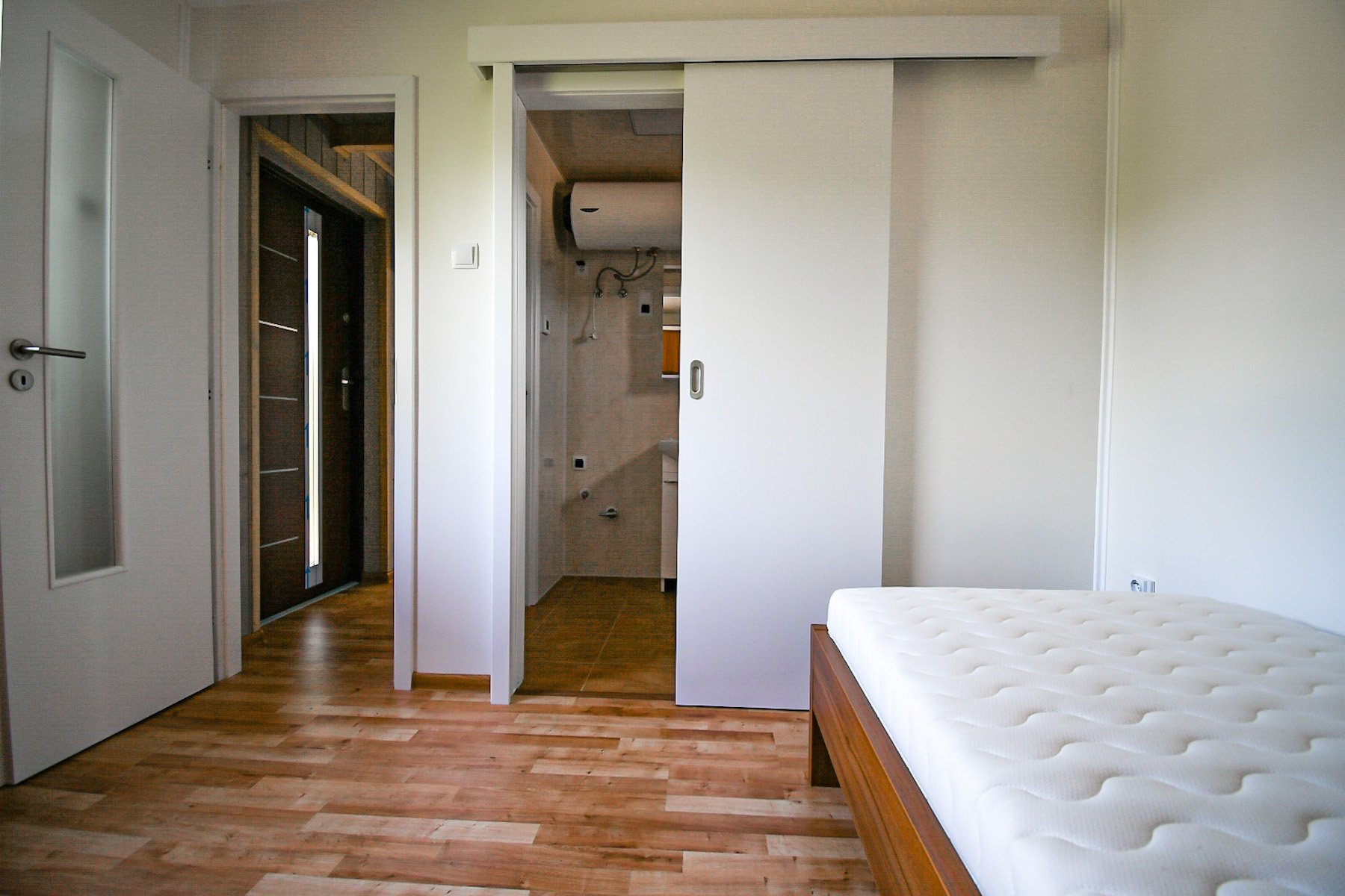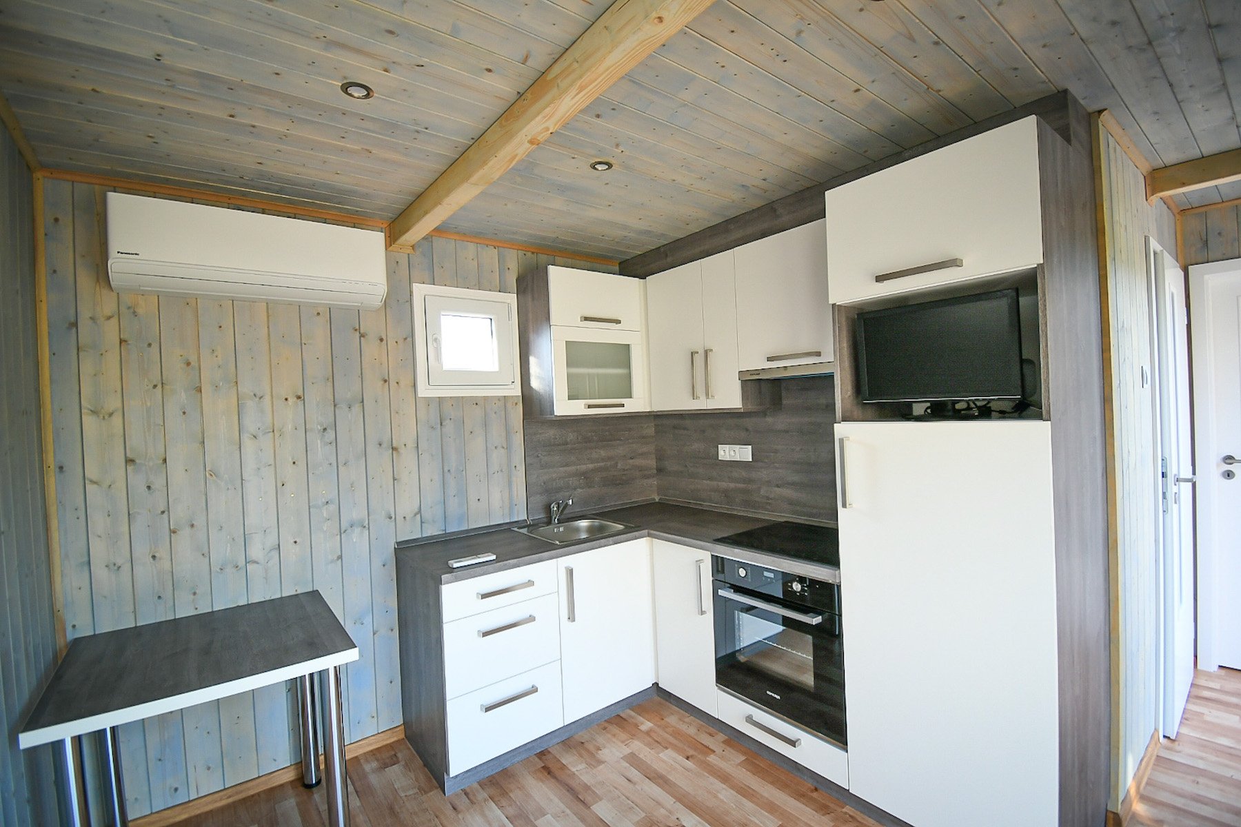 Vnitřní obložení stěn je zhotoveno ze sádrokartonu nebo z dřevěných palubek. Interiér včetně koupelny a kuchyně vám zhotovíme na přání, spolupracujeme s profesionálními designéry.